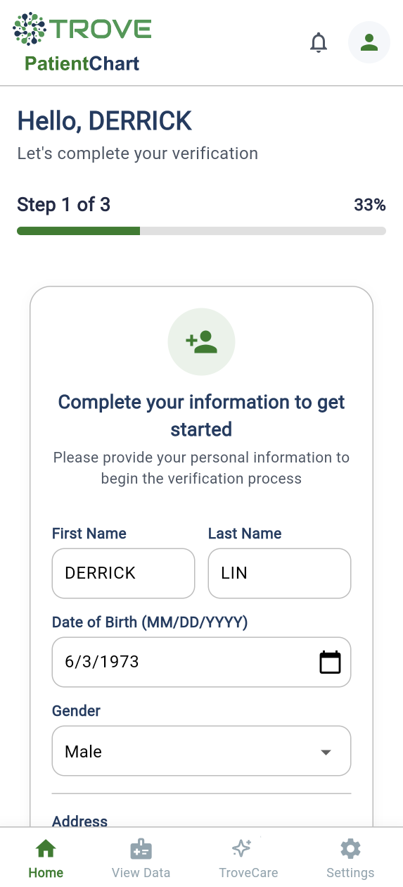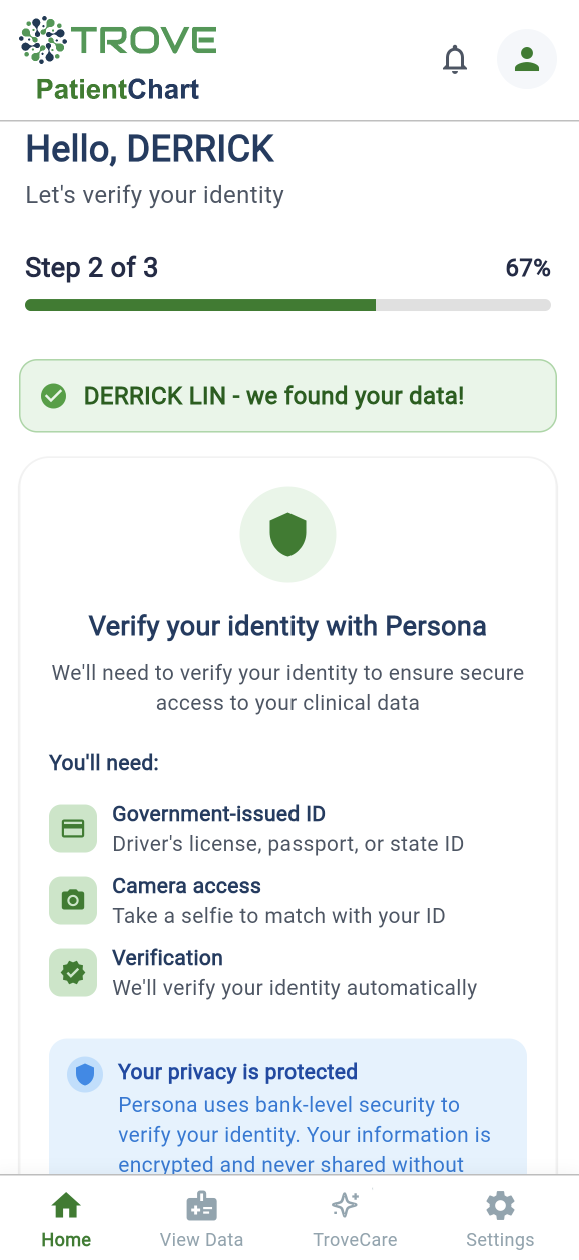 Yes — you need to create an account with Trove, and identity verification through Persona (IAL2) is sufficient to initiate a TEFCA request.
